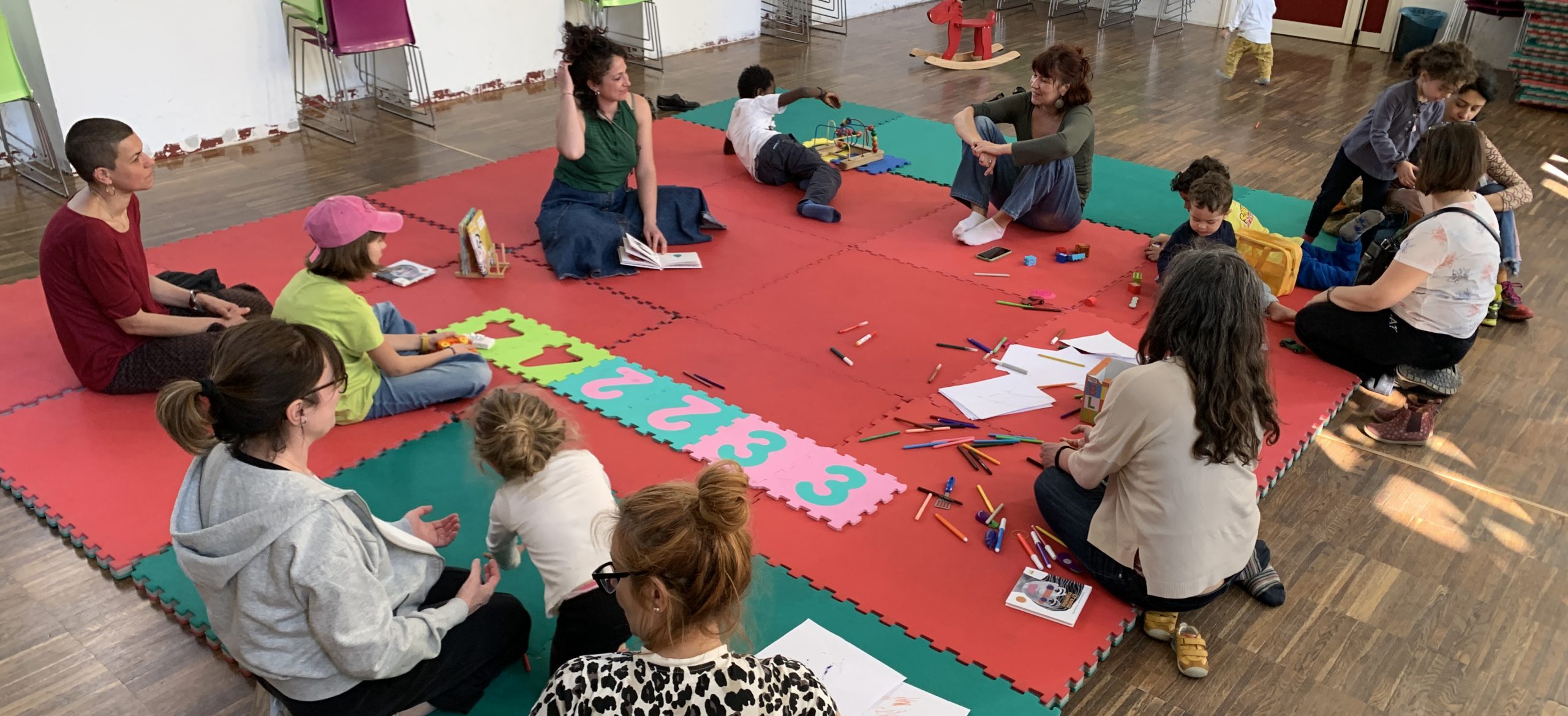 Attività di giocomotricità alla Casa nel Parco con beneficiarie del progetto Mille Giorni Insieme con Sara Formicola, conduttrice del “mercoledì dei bambini”, percorso di incontri alla Casa del Quartiere di Mirafiori sud